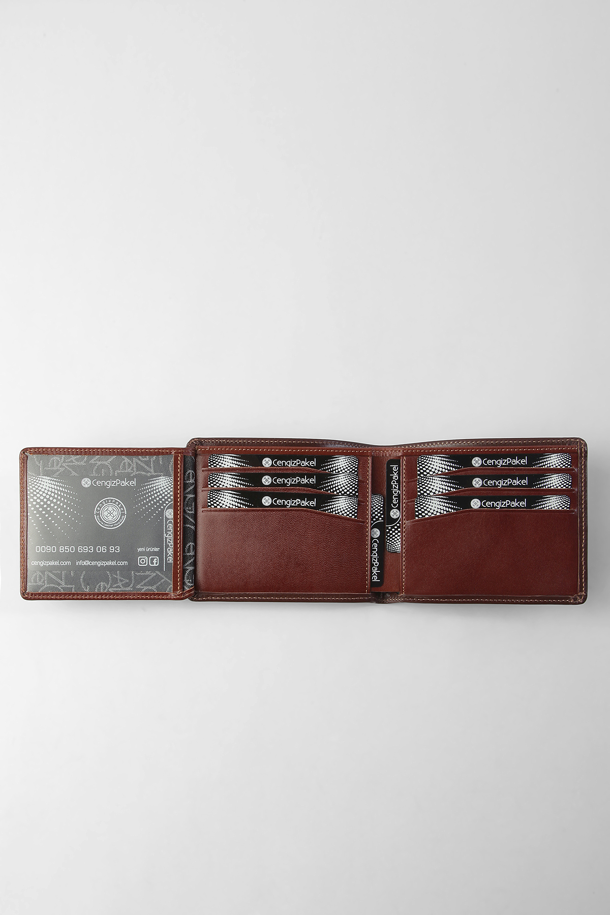 İç Detaylar: 9 adet kredi kart bölmesi, 2 adet gizli bölme, 2 adet kağıt para bölmesi, 1 adet şeffaf bölme